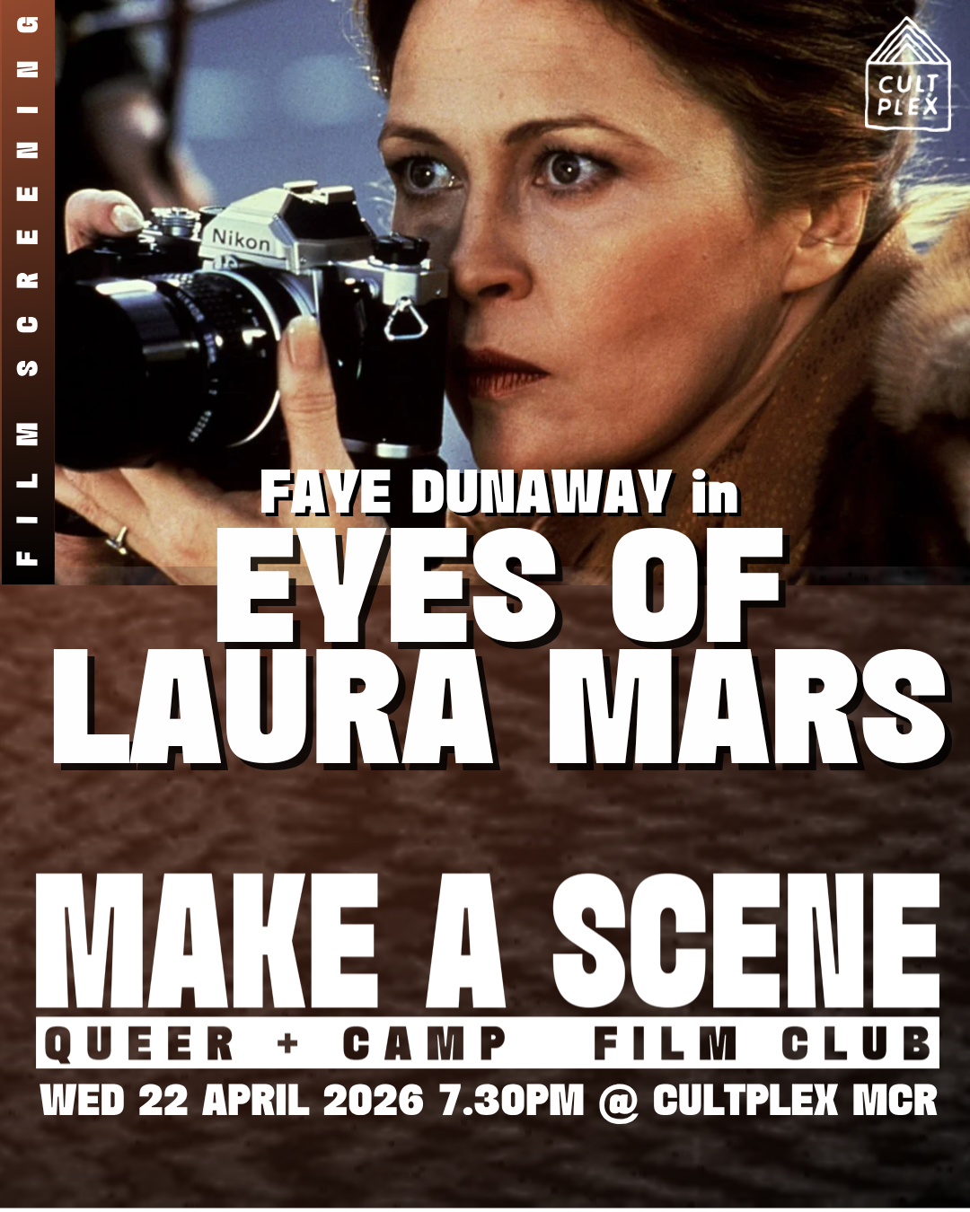 Make A Scene Film Club invites you to witness Eyes of Laura Mars - a supernatural horror thriller so stylish it practically demands to be watched with a cocktail in hand and cigarette to steady your nerves. Directed by Irvin Kershner (later of The Empire Strikes Back fame) and written and by none other than horror maestro John Carpenter, this 1978 oddity blends high fashion, psychic visions and serial killer thrills into a mirrorball fever dream. Set in the glittering world of late-70s New York fashion photography the film follows Laura Mars - a photographer who starts seeing murders through the killer’s eyes.